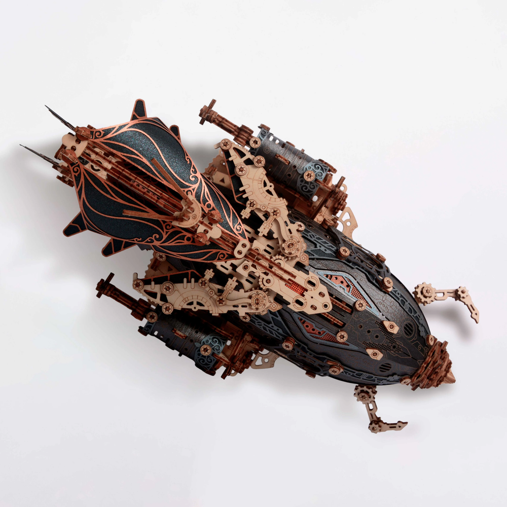 The RokrGeek Steampunk Airship 3D Wooden Puzzle is inspired by the vintage aesthetics and flight fantasies of the 19th century Industrial Revolution.