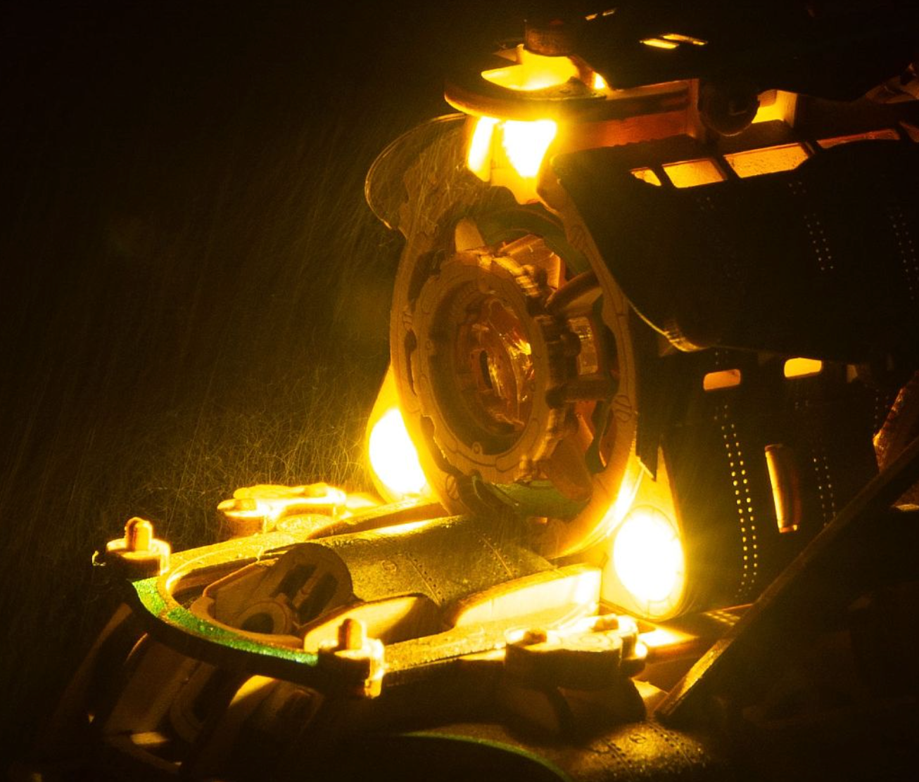 The locomotive includes a cab, power plant, and front-mounted engine, and can be connected to two uniquely designed supply cars. LED lighting brings the display to life: the warm amber spotlight shines ahead while the interior cabin glows through the windows, creating a realistic sense of motion. With its carefully layered textures, rivet-style detailing, and accessible assembly steps, this kit delivers both a satisfying build and a striking steampunk display piece. Recommended for ages 14 and up, it's a perfect addition to any desk, shelf, or collector’s showcase.